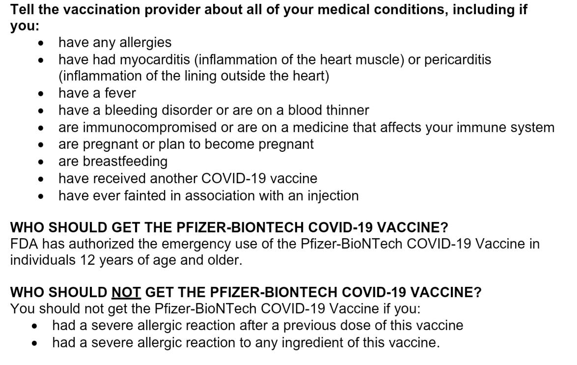- Pfizer’s clinical trial synopsis under Exclusion Criteria: